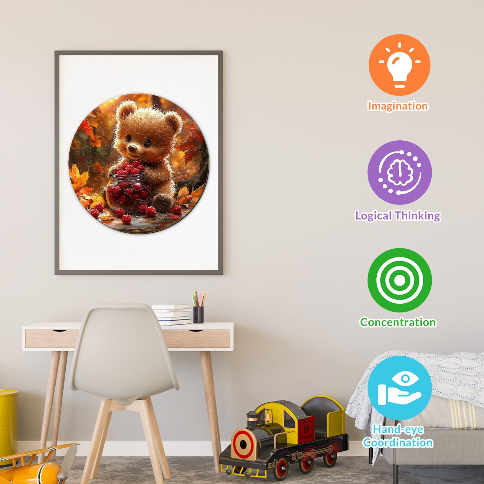 AEEKDOOK Wooden Puzzles for Kids Ages 4-6 - Berry Bear 50 Pieces Children Puzzles - Large Pieces Kids Puzzle with Unique Shapes - Educational Puzzles Toys for Boys and Girls (11.4 * 11.4 in)