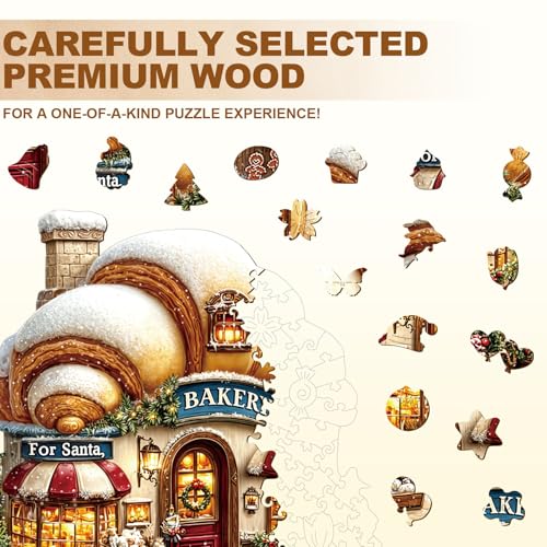 AEEKDOOK Wooden Puzzles for Adults - Christmas Bakery House Wood Puzzles Adult - Unique Animal Shape Wooden Jigsaw Puzzles for Adults - Birthday Gifts for Puzzle Lovers, Family (11.4 * 11.4in)