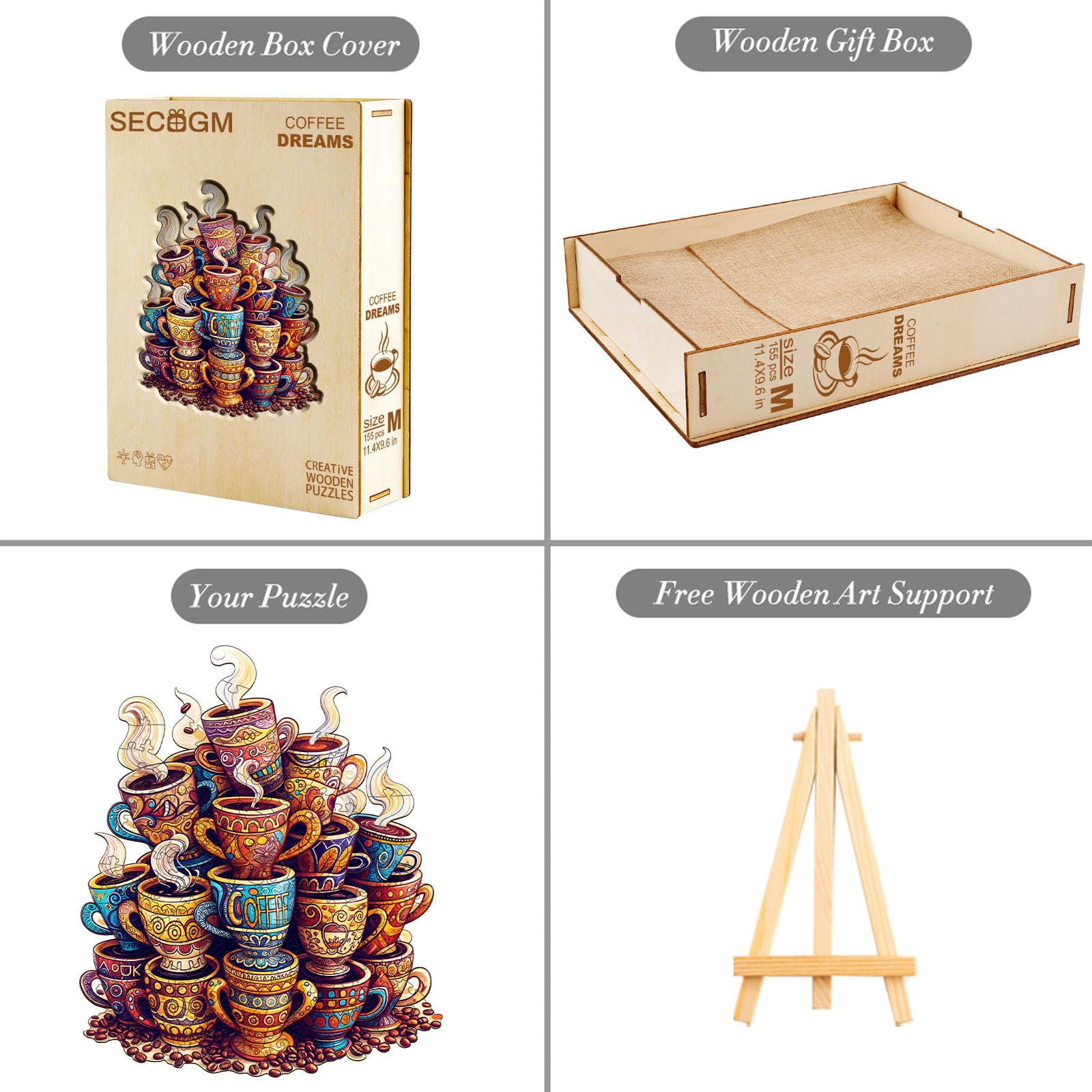 Expertly crafted from select basswood, laser-cut to ensure tight interlocking, our wooden puzzles guarantee seamless fit and precision.