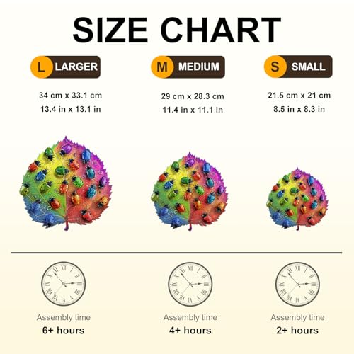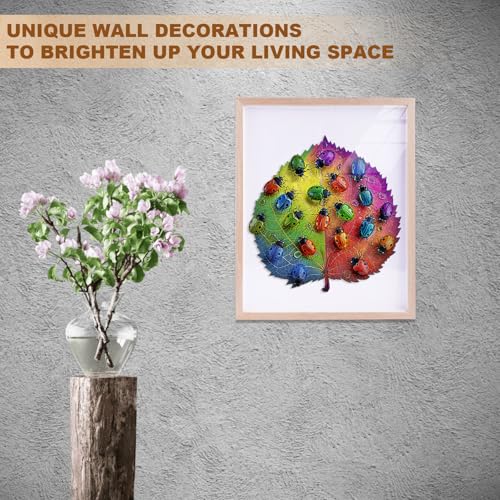 - 【Wooden Puzzles for Adults】A vibrant rainbow - hued leaf serves as a canvas for colorful ladybugs. With diverse shades like red, green, blue, and purple, these spotted beetles, plus glistening dew drops, create a whimsical, nature - inspired puzzle scene full of charm.