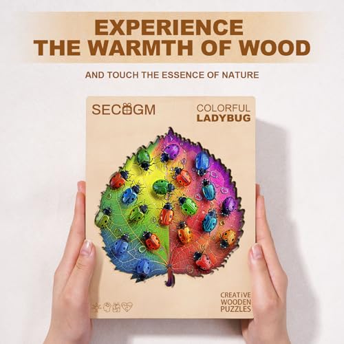 Wooden Puzzles for Adults - Colorful Ladybird Wooden Jigsaw Puzzle 100 pcs - Unique Animal Shape Wood Cut Puzzles - Eco-Friendly Home Office Decor (8.5 * 8.3in)