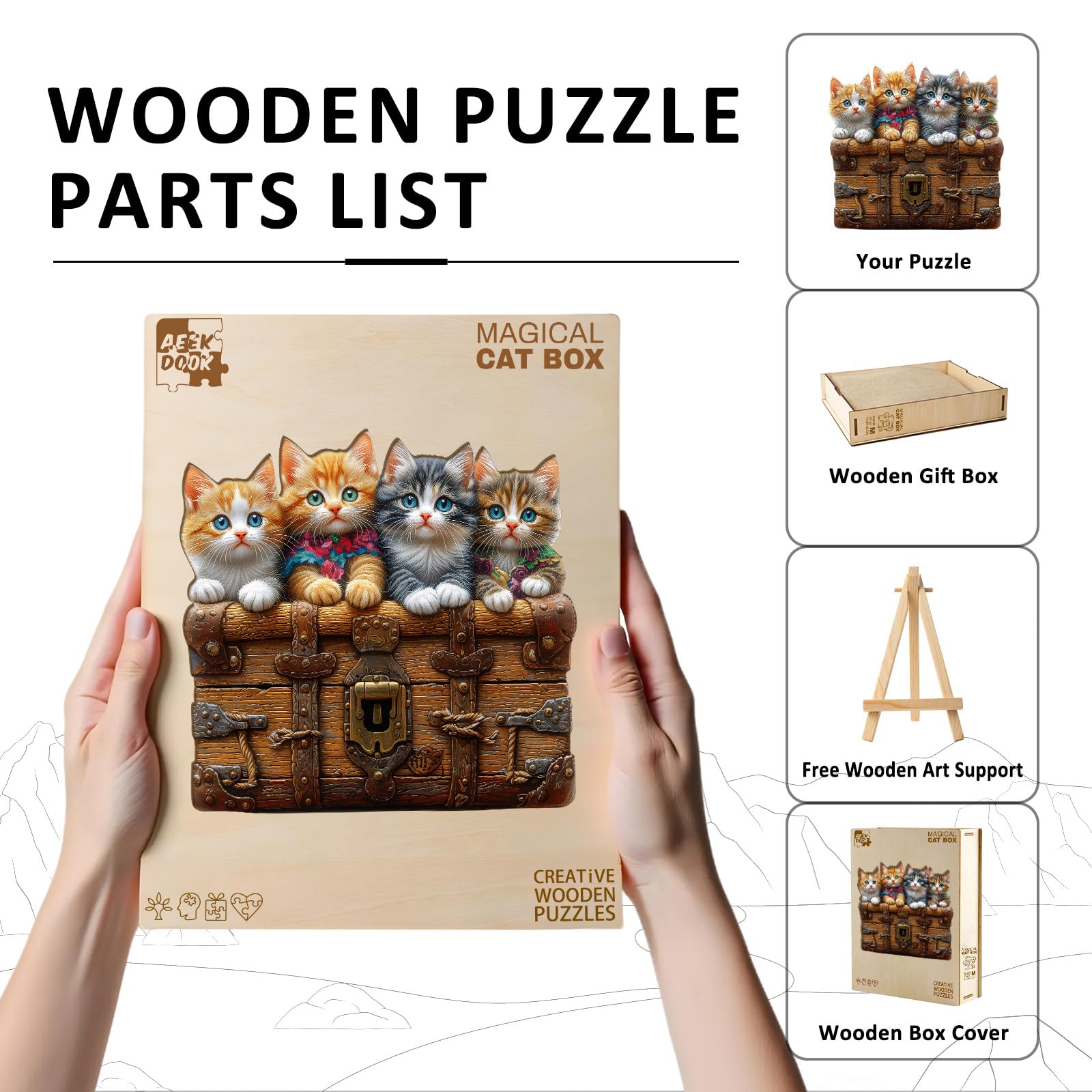 - 【Ideal Gift Choice】This cute kitten trunk wooden puzzle comes in a beautifully designed package, making it a perfect present to family and friends on Christmas, birthdays, Father's Day, Valentine's Day, Thanksgiving, Children's Day, Easter, Halloween, or any other holiday.