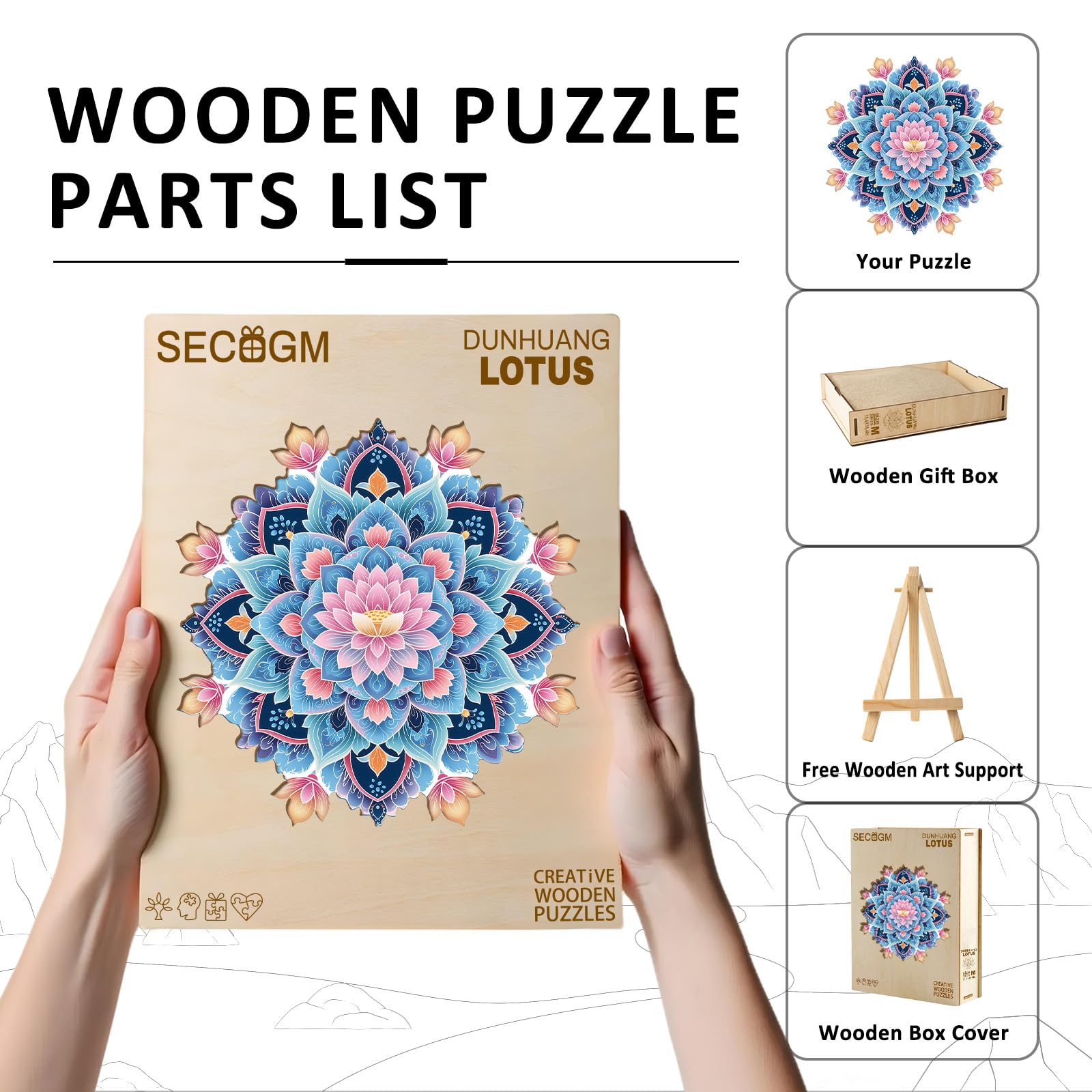 - 【Ideal Gift Choice】This Dunhuang lotus wooden puzzle comes in a beautifully designed package, making it a perfect present to family and friends on Christmas, birthdays, Father's Day, Valentine's Day, Thanksgiving, Children's Day, Easter, Halloween, or any other holiday.