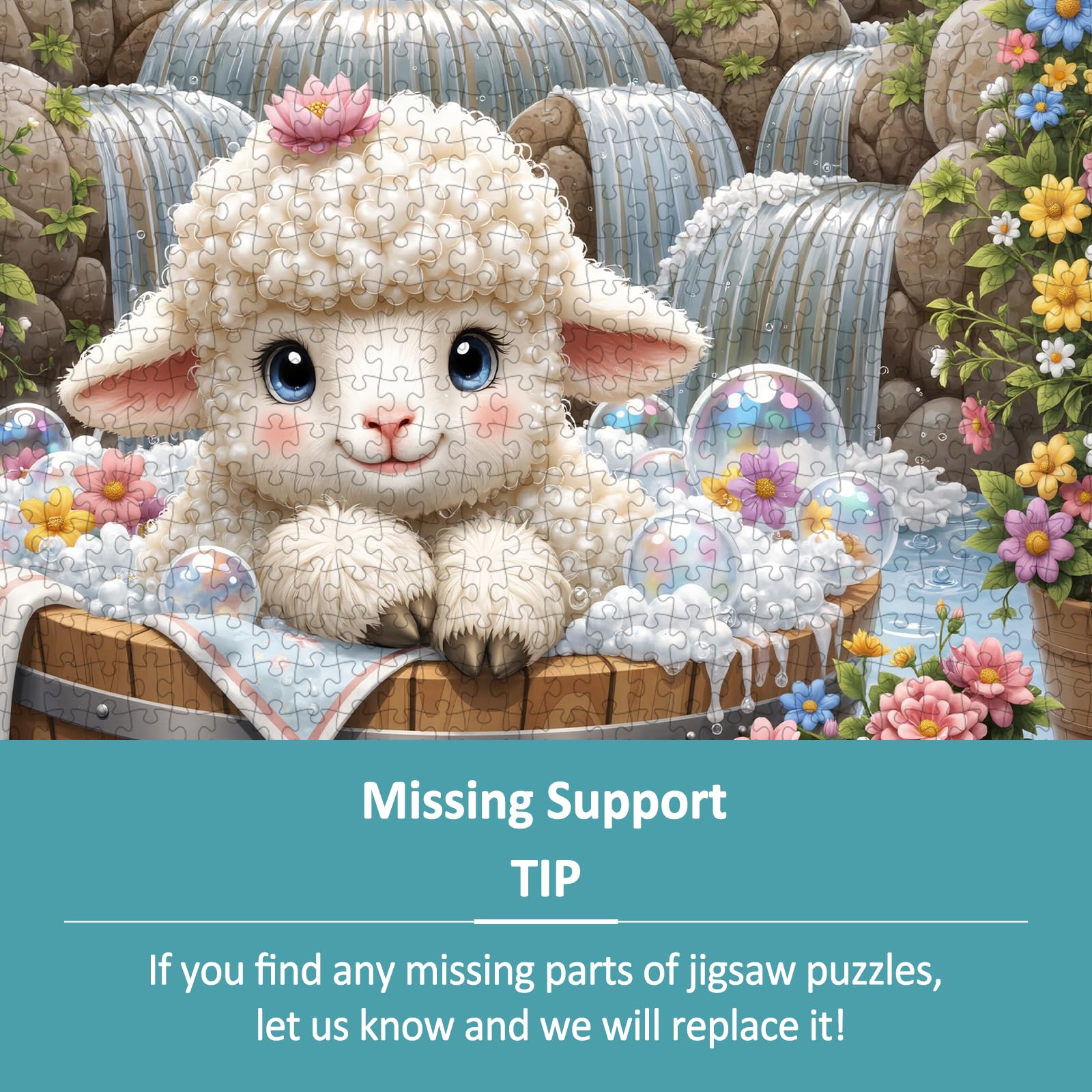 - 【Sheep Puzzles for Adults】 Finished size: 19.7*27.6in / 50*70cm. This 1000 piece puzzle for adults shows a cute lamb enjoying a bubble bath surrounded by flowers.It comes with an exquisite box and a high-resolution poster to provide reference for jigsaw puzzles.